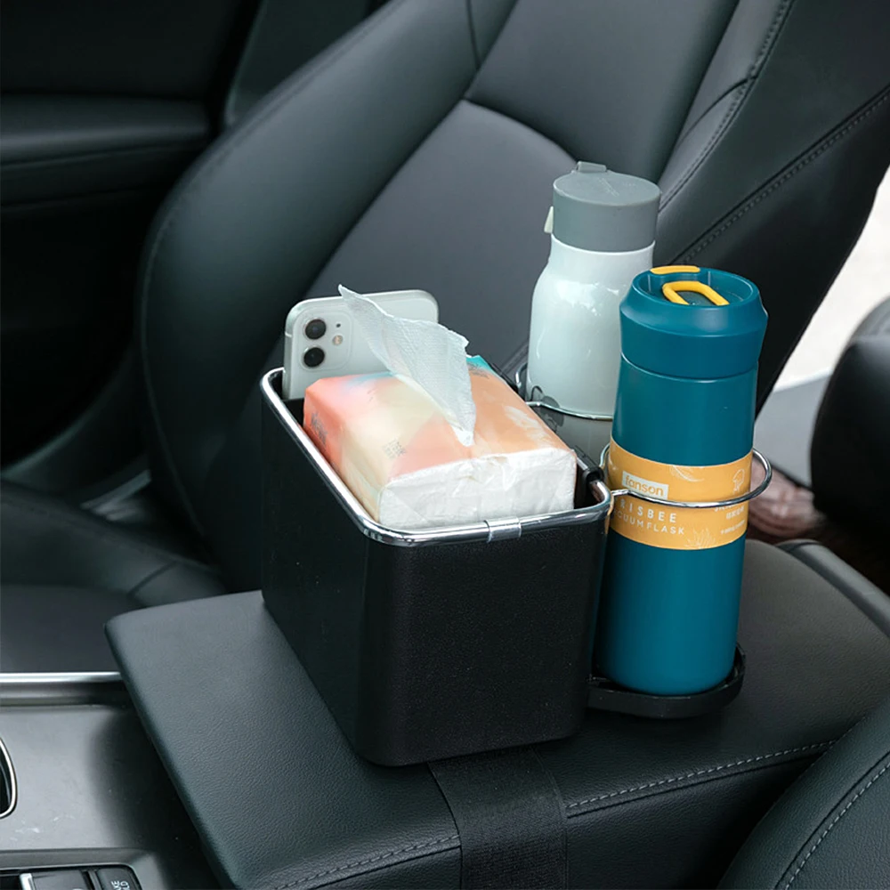 ✅ 3-in-1 Function – Cup holder + tissue holder + storage tray